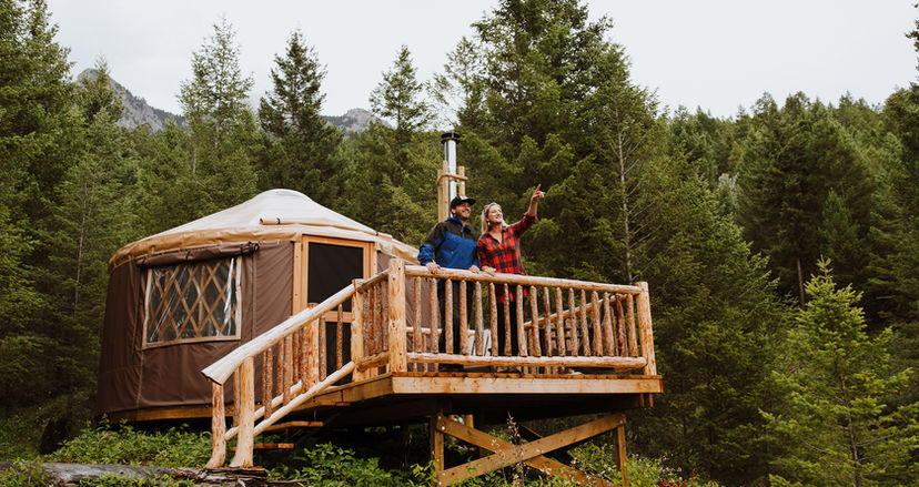 The Nest is situated above the trees on a hillside, and has a viewing deck to sit and relax in the serenity of nature. This Yurt is one of the more remote Yurts and is a peaceful hike through the fir trees.